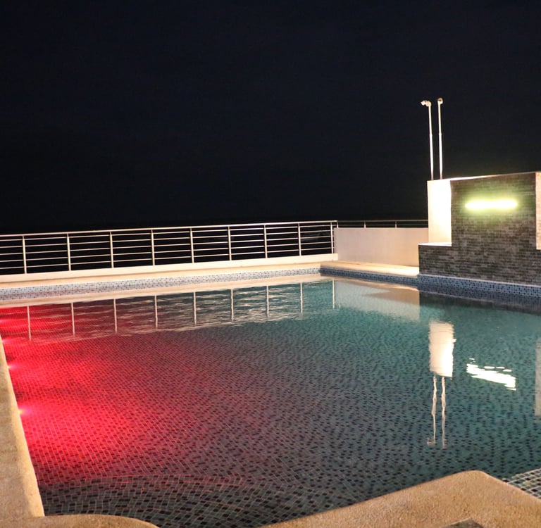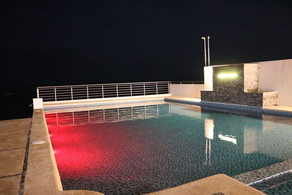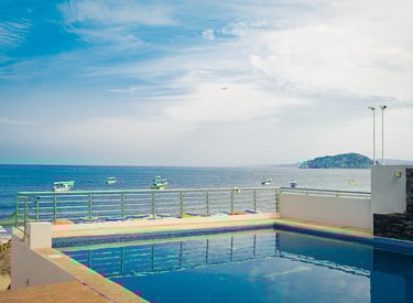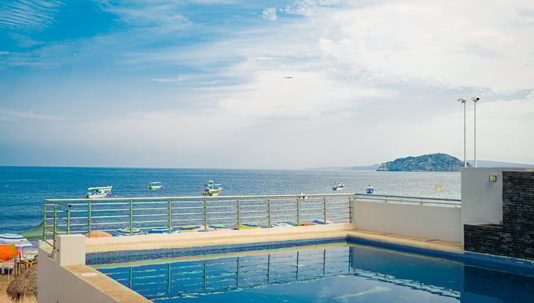 Relájate en nuestra alberca con vista al océano, perfecta para un chapuzón tranquilo.